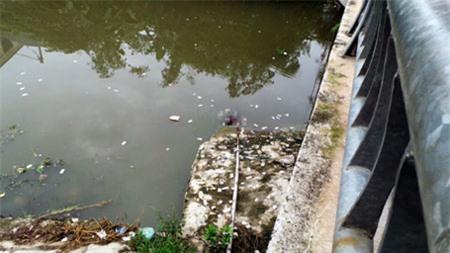Xác người phụ nữ đã bắt đầu trương phình, nổi sát chân cầu. Phần thân phía dưới vẫn chìm trong nước.