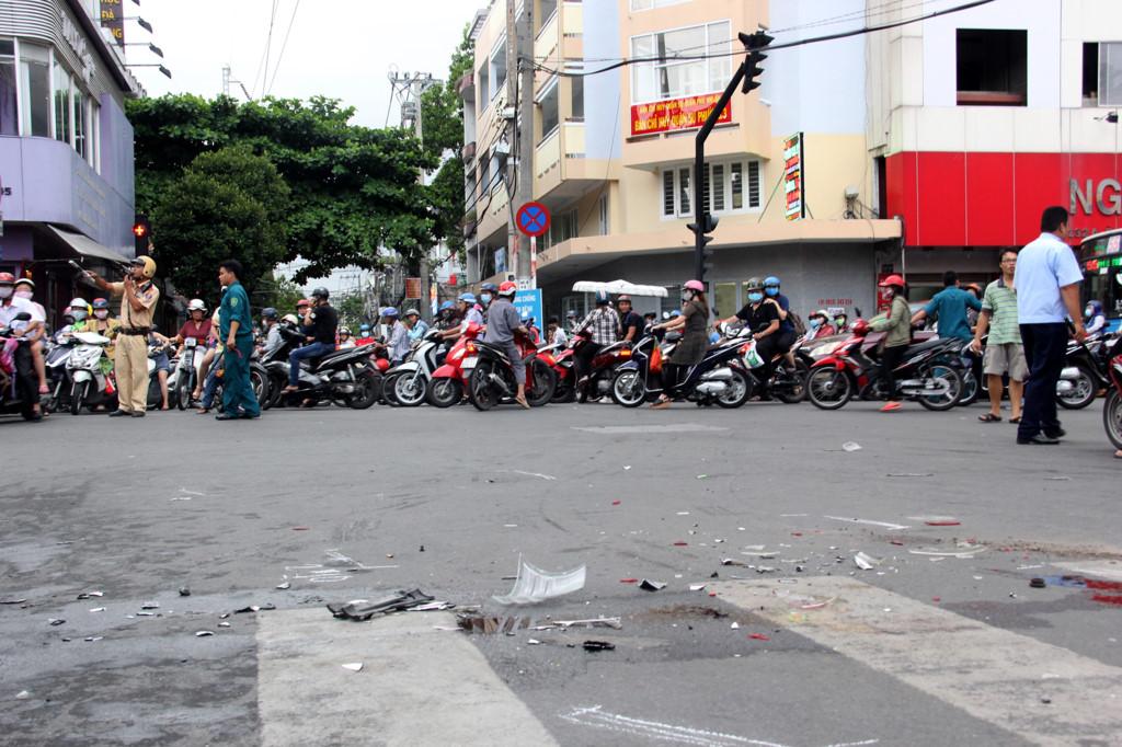 Các phương tiện sau đó được kéo đi, hiện trường chỉ còn lại những mảnh vỡ, vương vãi nhiều vết máu.