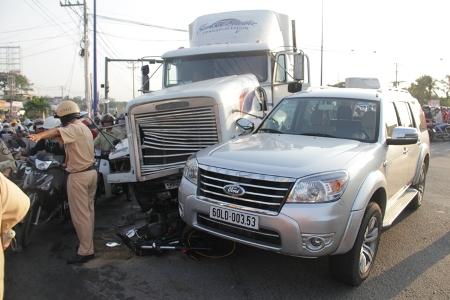 Theo hồ sơ của CSGT, cũng tại giao lộ này trước đây 2 tháng, xe đầu kéo BKS 57L-0061 do tài xế Nguyễn Hoàng Thương (28 tuổi, quê Bình Định) điều khiển đã mất thắng tông hư hỏng nặng 11 phương tiện các loại và khiến 8 người đi đường bị thương.