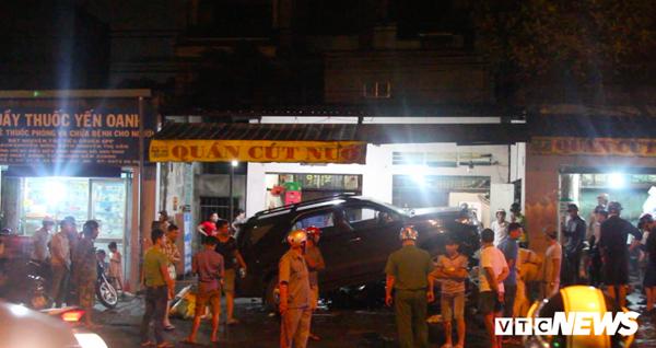 Sau đó, chiếc ô tô tiếp tục leo lên vỉa hè cuốn vào gầm thêm 3 xe máy đang dựng trước quán ăn.