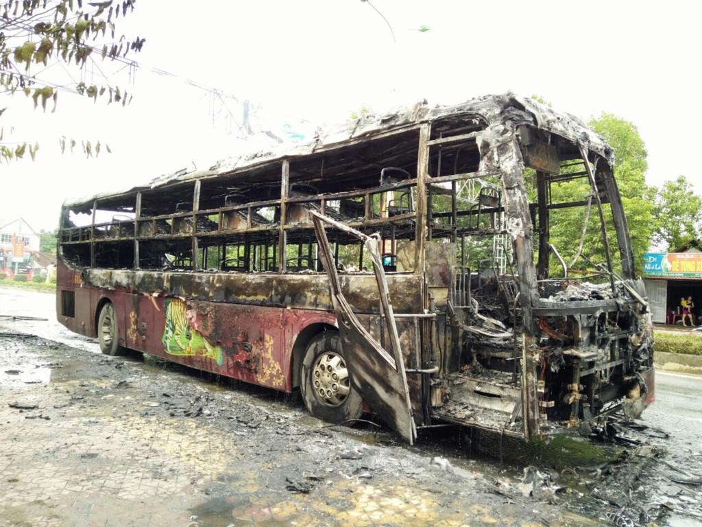 Xe khách giường nằm bốc cháy dữ dội chiếc xe khách giường nằm đang đậu bên đường bất ngờ bốc cháy dữ dội. Chỉ sau hơn 20 phút, ngọn lửa đã thiêu rụi toàn bộ, xe chỉ còn trơ lại bộ khung