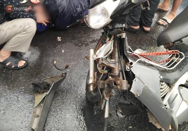 Tại hiện trường, chiếc xe máy bị gãy làm đôi, nhiều mảnh vỡ văng tung tóe khắp mặt đường. Hông chiếc xe ô tô bị móp méo, hư hỏng. Giao thông qua đoạn đường bị ùn tắc.