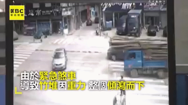 Được biết, vụ tai nạn xảy ra tại một ngã tư đường ở Ninh Ba, Chiết Giang, Trung Quốc. Qua đoạn video được camera giám sát ghi lại, có thể thấy một chiếc xe con màu bạc đang chầm chậm đi qua đường. Người tài xế tỏ ra vô cùng cẩn thận khi nhường đường cho 2 chiếc xe khác rồi mới từ tốn băng sang đường, và đúng lúc này thì một chiếc xe tải chở đầy thân tre đột ngột lao tới theo chiều vuông góc với chiếc xe con.