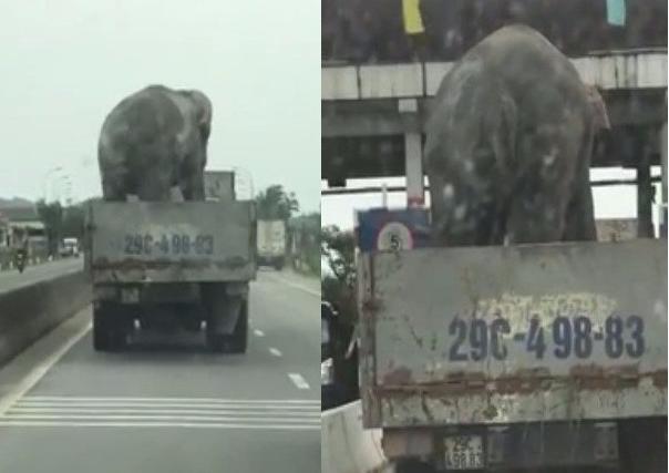 Mới đây, một clip ghi lại cảnh chiếc xe tải cỡ nhỏ mang biển số 29C chở một con voi chạy trên quốc lộ 1 đoạn qua tỉnh Hà Tĩnh.