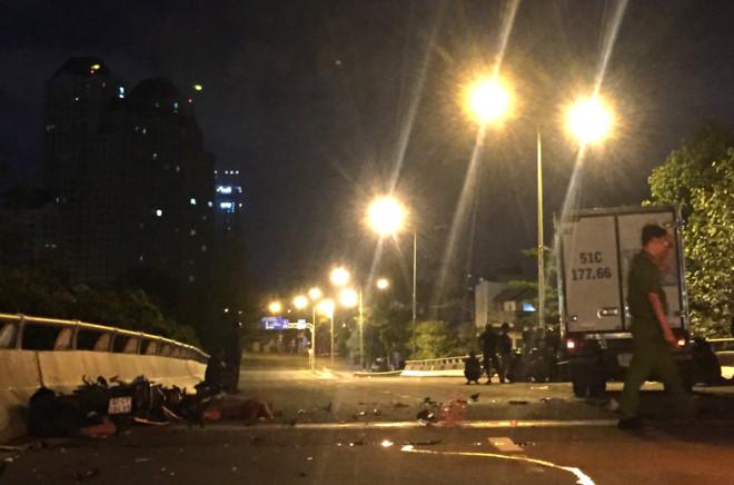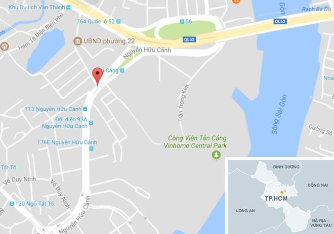 Nhận tin báo, Công an quận Bình Thạnh đã có mặt phong tỏa cầu vượt Nguyễn Hữu Cảnh, điều tra, xử lý vụ tai nạn.