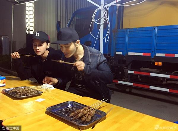 Angela Baby đã chia sẻ trên weibo làm việc của mình: "Điều lãng mạn nhất em có thể nghĩ tới, chính là đầu hè ở Tượng Sơn, cùng anh đi ăn thịt xiên nướng". Trong những bức ảnh có thể thấy cặp đôi ăn mặc vô cùng đơn giản, ngồi giữa phim trường không hề hào nhoáng cùng ăn những xiên thịt, tuy vậy cả hai vẫn mỉm cười vô cùng hạnh phúc. Chiếc bánh kem hình trái tim màu hồng nói thay cho sự hạnh phúc giữa Huỳnh Hiểu Minh và Angela Baby.