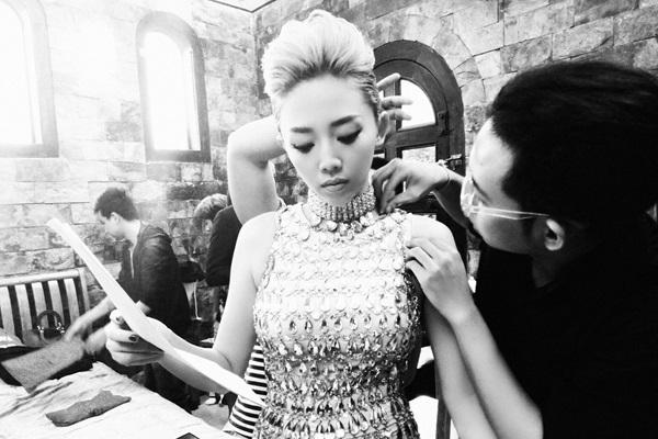 Giọng ca ‘Gửi người yêu cũ’ tranh thủ tạo dáng nhí nhảnh tại hậu trường.