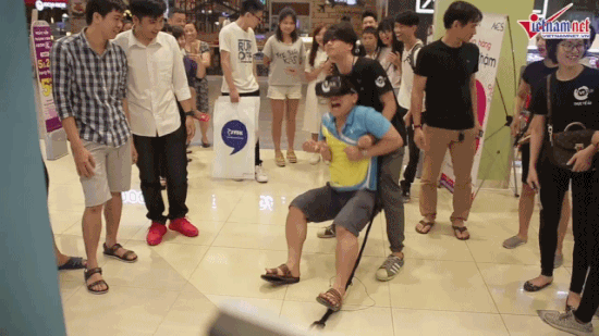 Phóng viên chúng tôi đã ghi lại được những biểu cảm vô cùng hài hước và đặc sắc của các bạn trẻ khi thử sử dụng chiếc kính thực tế ảo này: