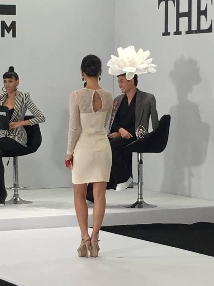 Host The Face Vietnam 2018 "ăn cắp" bông hoa của Kikko Chan và tự đội lên đầu mình.