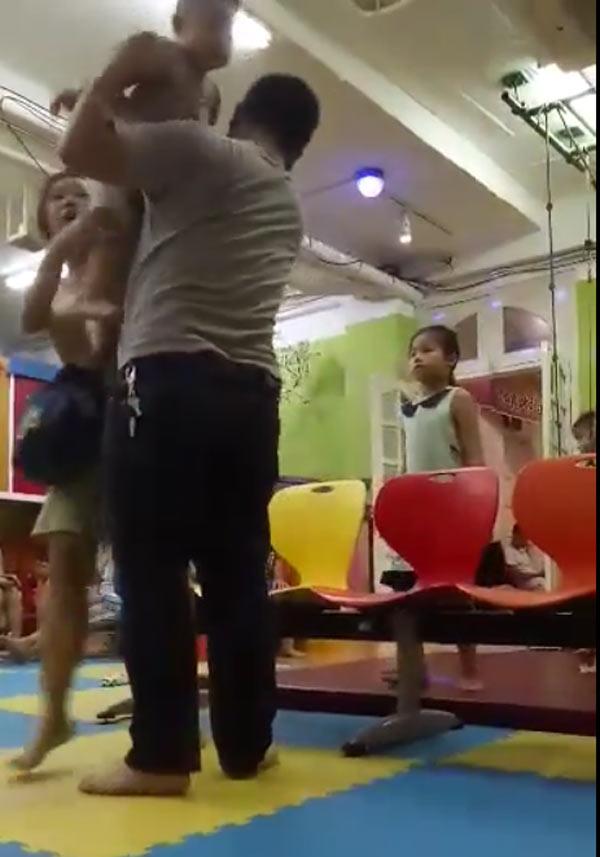 Màn đánh lộn xảy ra trước sự có mặt của nhiều em nhỏ. Ảnh cắt từ clip