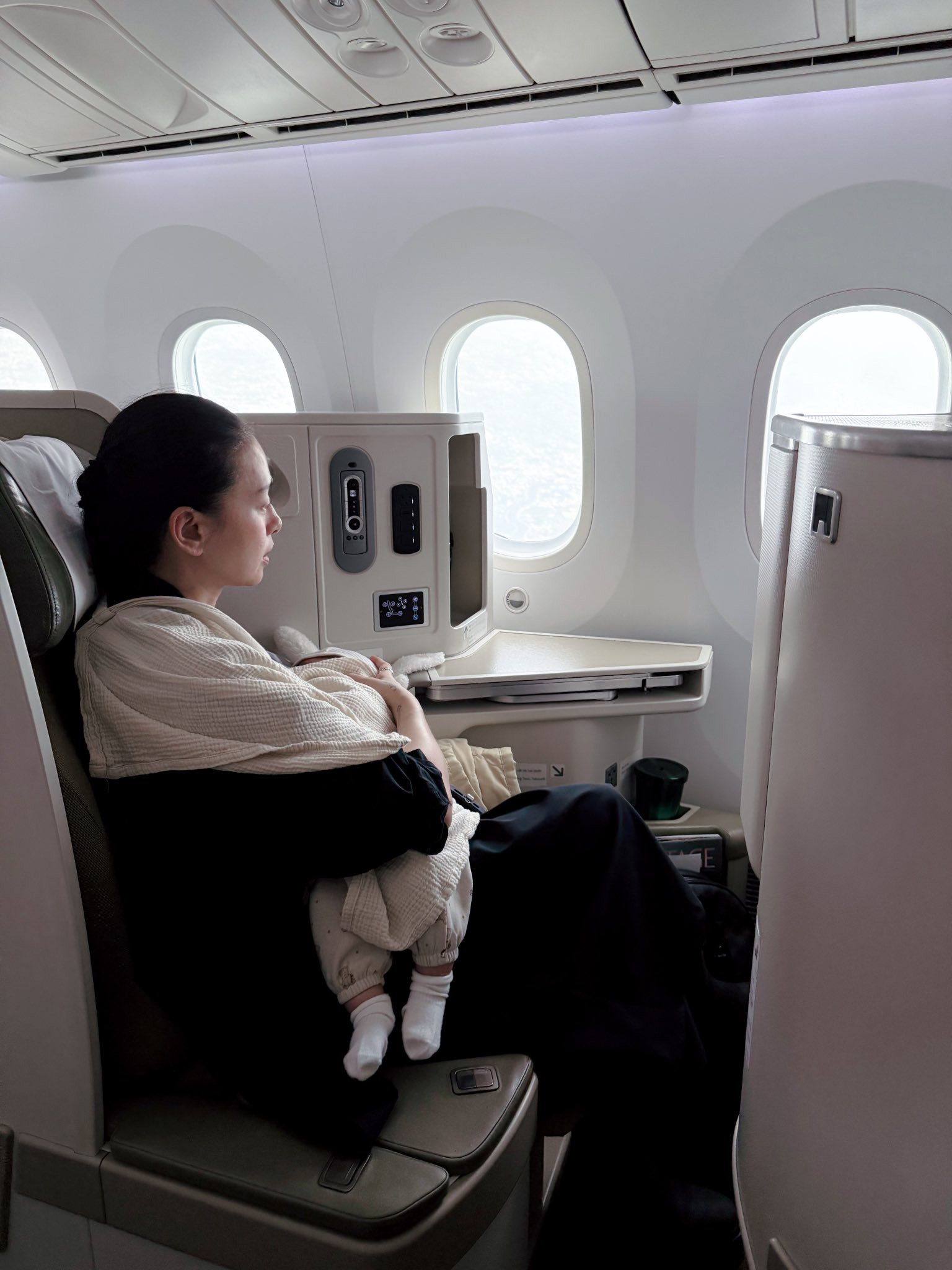 Theo đó, cặp đôi cho bé Gạo ngồi khoang thương gia. Chuẩn ái nữ của ba Huy mẹ Vân nên mới sinh ra, công chúa đã được hưởng những điều kiện tốt nhất.