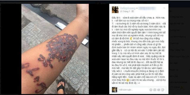 “Công việc chưa có gì ổn định, buôn bán thì nhàm nhàm ngày no ngày đói, đợt gần đây mình có cơ hội được xin vào một chân làm cán bộ trong một công ty mà nếu có hình xăm này thì không thể được nhận, vậy nên mình quyết định đi xóa...”, Lương viết.