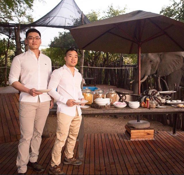 Lý Hoàn Vũ (trái) cùng bạn trai Vương Nghị Duệ (phải) tại đám cưới ở Cape Town, Nam Phi hôm 24/5.