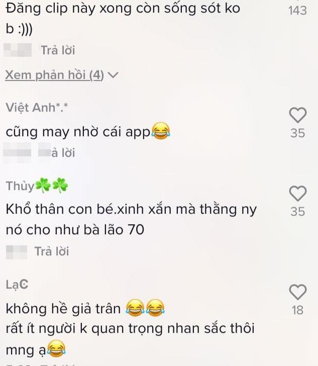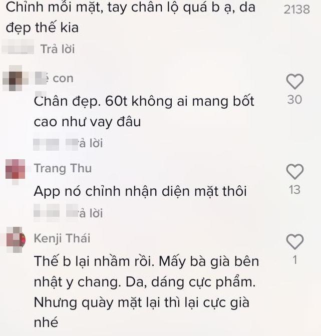 Khi sử dụng loại ứng dụng này, app cũng chỉ khiến mỗi gương mặt bị lão hóa còn chân tay nữ chính vẫn bình thường. Để ý kỹ mọi người dễ dàng nhận ra, đây là chuyện tình lệch tuổi cực giả trân.