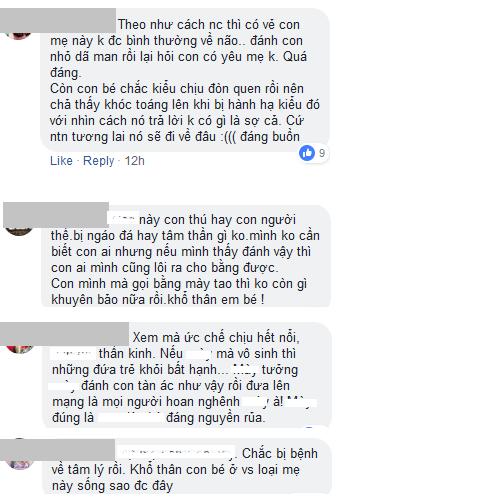 Nhiều Facebooker chỉ trích người mẹ vì cách dạy con quá bạo lực, thậm chí có người còn cho rằng tâm lý bà mẹ này không ổn định.