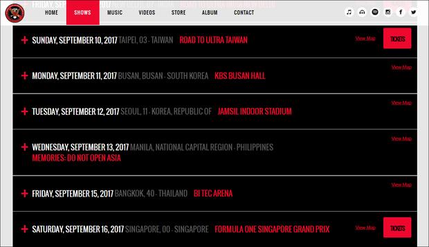 Website chính thức của The Chainsmokers cùng nhiều trang bán vé chưa có TP. HCM trong danh sách điểm đến