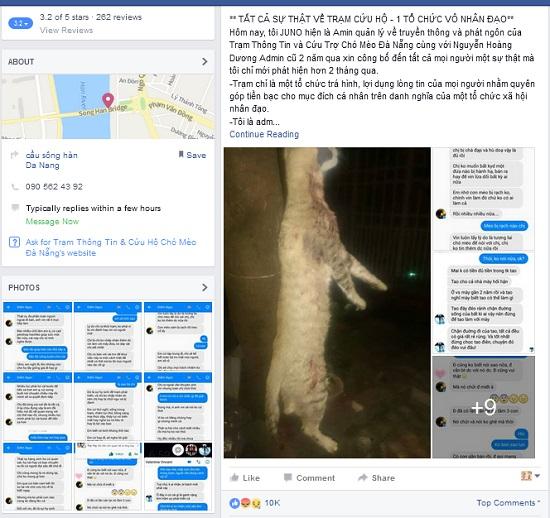 Một bài viết tố cáo hành vi ngược đãi động vật của trạm thông tin & cứu hộ chó mèo ở Đà Nẵng được chia sẻ trên một diễn đàn lớn tối qua. (ảnh chụp từ màn hình)