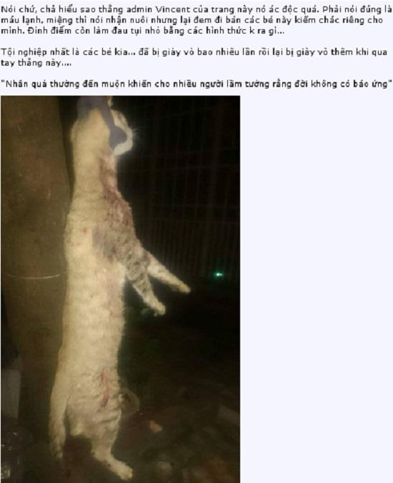 Quản lý Vincent - người bị tố bạo hành động vật đã chia sẻ trên fanpage của trạm.