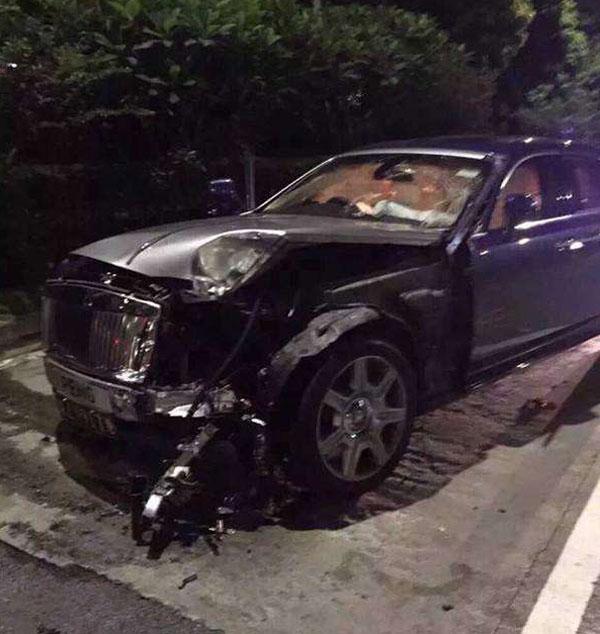 Phần trước của xe Roll Royce bị hư hỏng nặng, đèn pha trái vỡ hết. Dự tính chi phí sửa chữa không dưới 1 triệu tệ (khoảng 3,4 tỉ VNĐ).