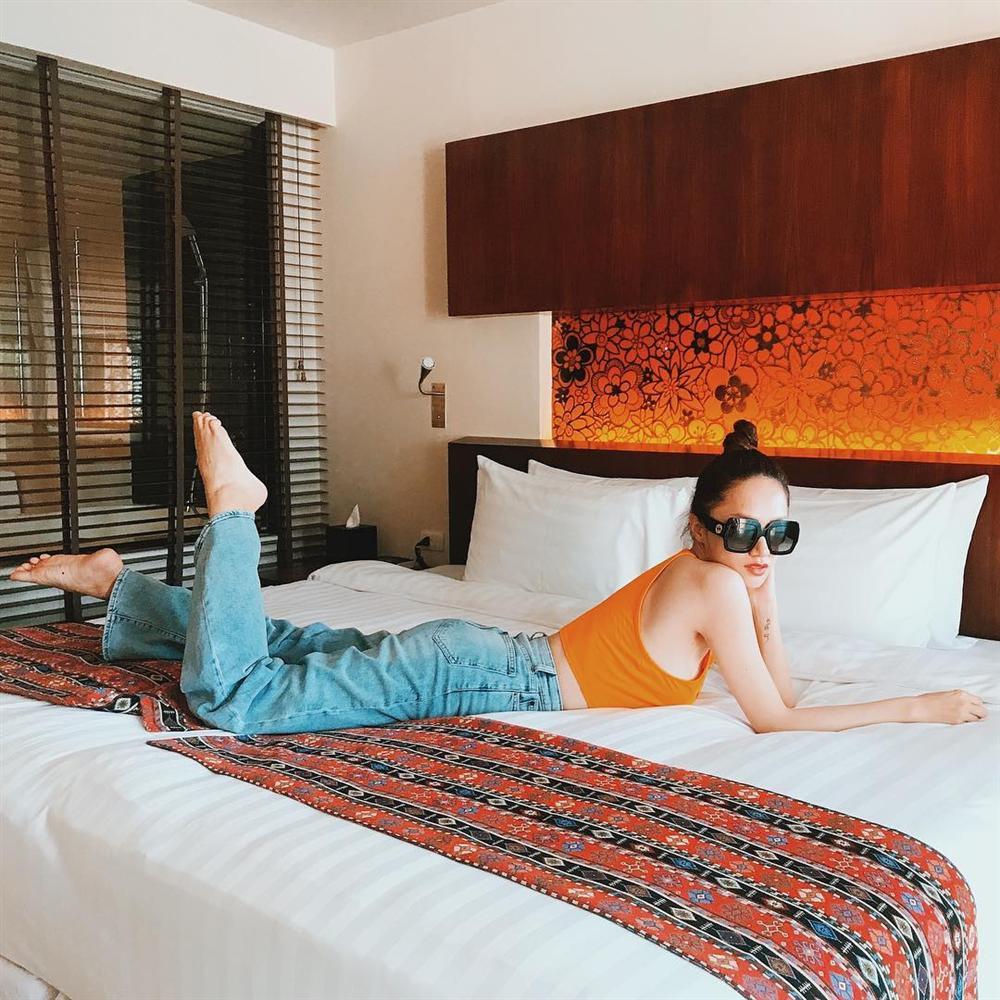 Hương Giang idol nằm nghỉ ngơi đợi diễn.