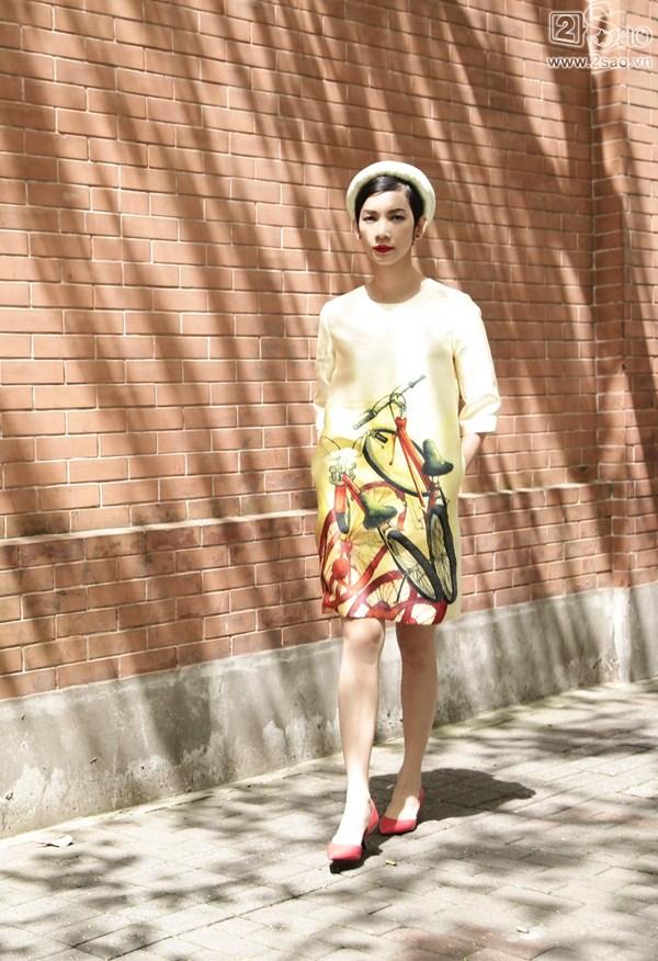 Bà mẹ một con tiết lộ dựa trên những câu chuyện cảm xúc của mình cùng tình yêu mộc mạc và chân thành, NTK Dominic Yang đã khéo léo đưa vào trang phục những hình ảnh giản dị như quả đu đủ, chiếc xe đạp cũ, hàng cau hay hồ sen… Những hình ảnh tưởng như rất bình thường này lại tạo nên cảm xúc yên bình, dễ chịu cho người mặc và cả những người đối diện.
