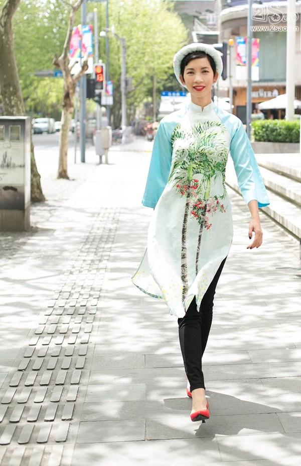 Trong bộ hình này, Xuân Lan diện những bộ đầm hoặc áo dài cách tân do NTK Dominic Yang “đo ni đóng giày” cho cô. Trang phục áo dài với màu sắc, hoạ tiết tươi tắn kết hợp mấn đội đầu giúp siêu mẫu nổi bật và gây chú ý với mọi người khi sải bước trên những đường phố tuyệt đẹp của Thượng Hải.