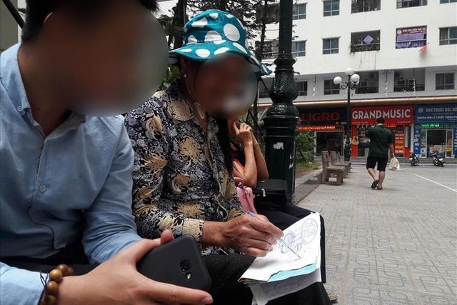 Nhóm người phụ nữ trung tuổi tự xưng là thành viên của Hội Thánh Đức Chúa Trời lôi kéo người dân tham gia đạo tại chung cư Linh Đàm (Hà Nội). Ảnh: T.V