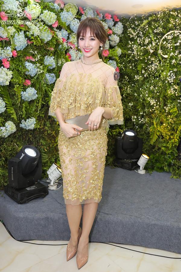 Cũng tới sự kiện này, Hari Won không xuất hiện cùng Trấn Thành. Không lựa chọn váy áo sexy, cô nàng diện trang phục kín đáo nhưng vẫn rất gợi cảm.