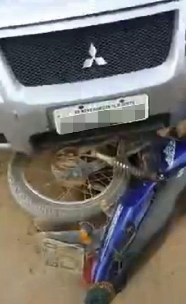 Vụ tai nạn được cho là xảy ra tại Brazil. Hai mẹ con đi xe máy va chạm với ôtô. Chiếc xe còn nằm kẹt trong gầm bốn bánh cho thấy vụ tai nạn không hề nhẹ.