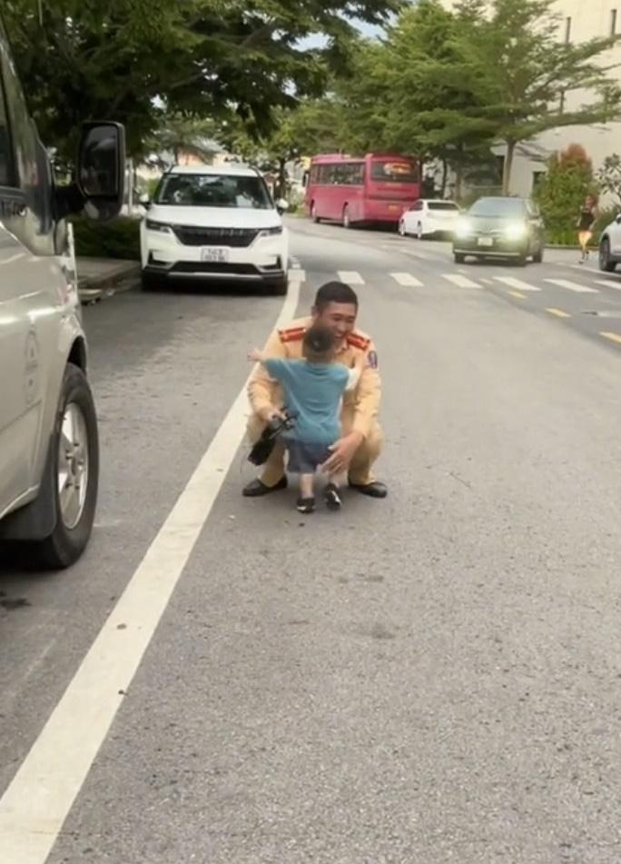 Qua đoạn video có thể biết được bố cậu bé là một cảnh sát giao thông (CSGT) bởi khoác lên mình bộ quần áo của ngành. Do thường xuyên bận rộn công việc nên có lẽ thời gian dành cho con của người bố này rất ít.