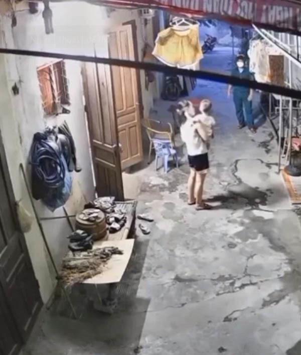 Bé trai chạy theo đòi bế nhưng ba đi chống dịch Covid-19 không dám đến gần. (Ảnh: Thanh niên)