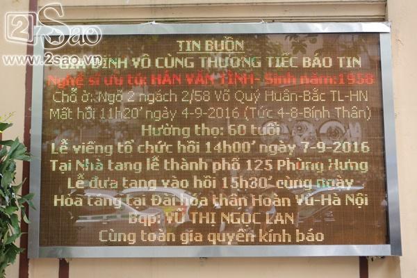 Tang lễ của nghệ sĩ Hán Văn Tình đã bắt đầu diễn ra vào 13h30 chiều nay. Rất đông các nghệ sĩ miền Bắc đã đến để tỏ lòng tiếc thương và đưa người bạn, người anh của mình về với đất mẹ.