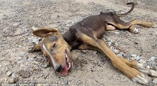 Thành viên của tổ chức Animal Aid Unlimited (AAU) đã tìm thấy một chú chó hoang đang nằm thoi thóp trên đường phố Undaipur, Ấn Độ trong tình trạng gầy xơ xác nằm trên nền đất bụi bặm và bẩn thỉu. Nhiều người đi qua không dám lại gần vì sợ sẽ bị lây bệnh dịch, có vẻ như nó đã bị bỏ đói trong một thời gian rất dài, hi vọng sống rất lay lắt.