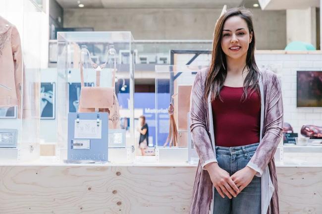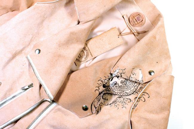 Trong hình là sản phẩm mẫu được làm bằng da lợn vừa được Tina Gorjanc giới