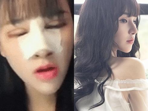 Yến Tatoo xuất hiện với chiếc mũi băng bó, sưng tấy trước đó.