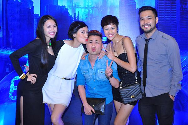 Thúy Hằng (giữa) trẻ trung với áo bó sát trễ vai và chân váy midi