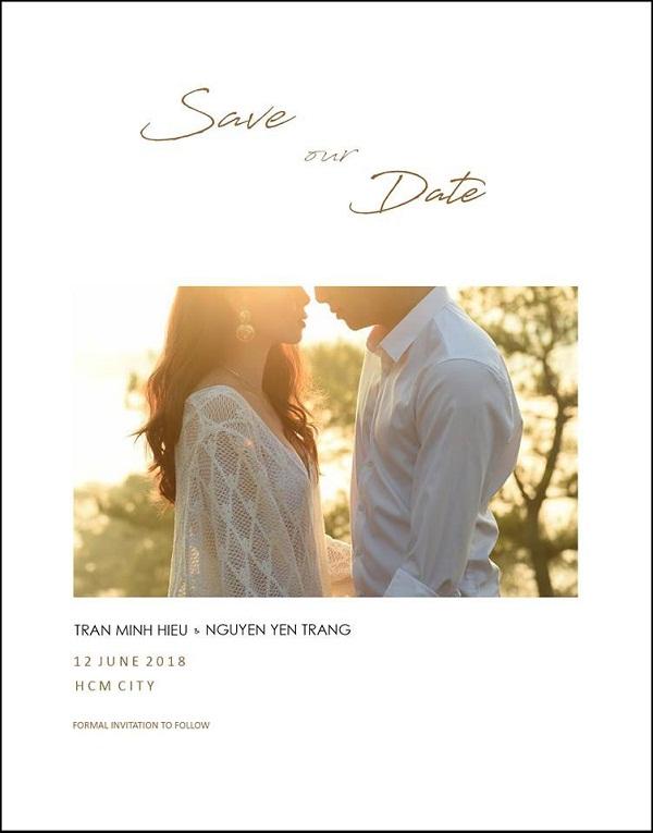 Theo thông tin trong ảnh, hôn lễ của Yến Trang sẽ diễn ra vào ngày hôm nay (12/6), tại TP HCM. Chú rể có tên Trần Minh Hiếu - chàng trai được cho là đã quen biết Yến Trang 3 năm nay.