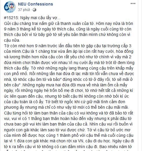 Chỉ là chàng trai không hiểu, luôn nghĩ cô ấy là người bạn tốt, người tri kỉ hoặc có thể hiểu mà cố tình không muốn hiểu. Hơn 9 năm cuối cùng thì chàng trai cũng đi lấy vợ.