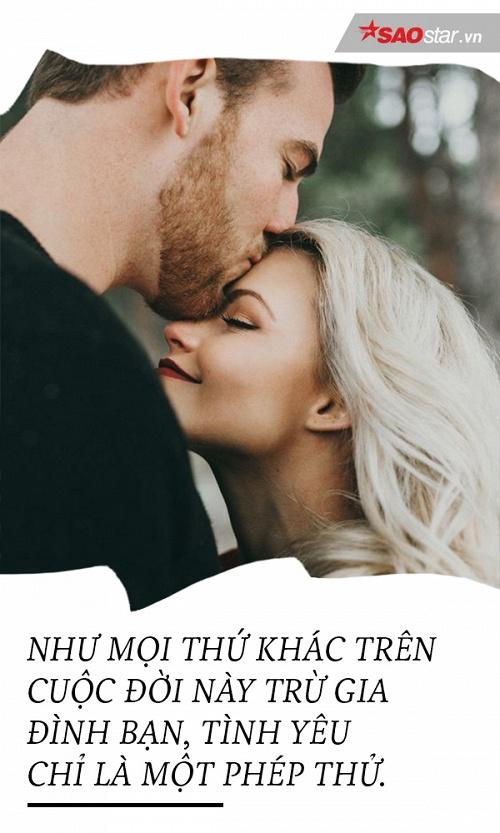 Như mọi thứ khác trên cuộc đời này trừ gia đình bạn, tình yêu cũng chỉ là một phép thử. Dù mạnh mẽ, mãnh liệt hay nhẹ nhàng, dịu dàng thì tình yêu cũng thật sự rất mong manh. Ngày hôm trước còn vui vẻ nói cười, chớp mắt một cái đã cò thể trở thành người dưng. Kỉ niệm cũng theo người mà phai tàn nhanh chóng theo thời gian. Mọi thứ rồi sẽ trở thành dĩ vãng, tại sao không lấy hết dũng khí nói ra mà lại chọn trở thành vô hình trong quá khứ của nhau.