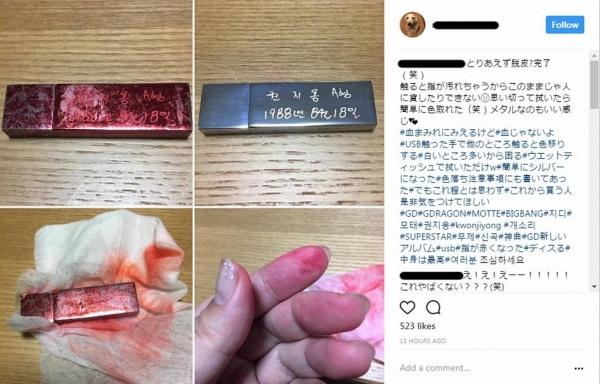 Mới đây, một người hâm mộ đã đăng tải hình ảnh chiếc album USB Kwon Ji Yong bị phai màu khi cầm trong tay và thậm chí chỉ còn trơ lại lớp vỏ kim loại nếu lấy khăn giấy ướt lau. Ngay lập tức sự việc này đã gây ra nhiều luồng tranh cãi. Và YG vừa lên tiếng giải thích về sự việc này: