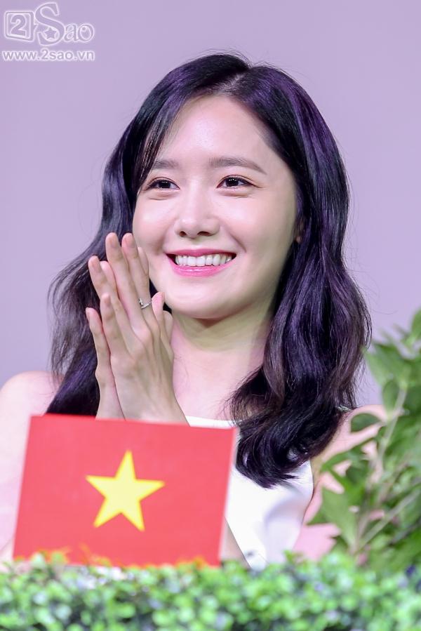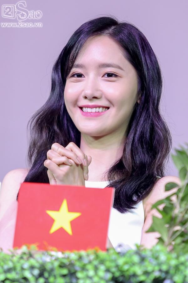Xuất hiện trong chiếc váy trắng tinh khôi, Yoona được các fan hâm mộ không tiếc lời khen ngợi với ngoại hình lộng lẫy như nữ thần. Người đẹp không ngừng mỉm cuời vẫy tay chào các fan tại Việt Nam.