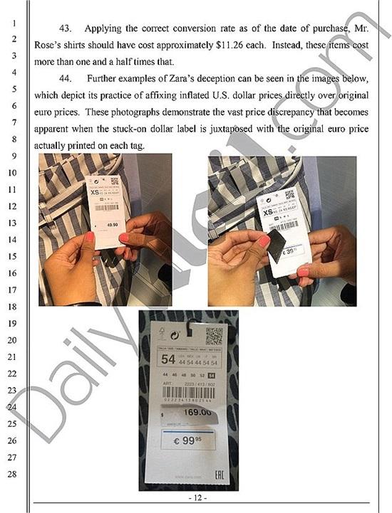 Cụ thể, nhiều cửa hàng của hãng Zara tại Mỹ đã bị cáo buộc sử dụng tag ghi giá bán bằng đồng Euro thay vì đồng Dollar Mỹ, từ đó khiến cho khách hàng lầm tưởng rằng những sản phẩm được bày bán có mức giá không cao (do đồng Euro có mệnh giá cao hơn đồng Dollar Mỹ).